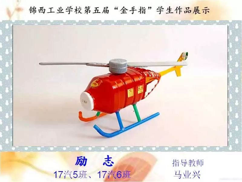 锦西工业学校金手指技能作品设计制作活动是我校的传统品牌活动,每年一次。第五届“金手指”作品大赛的作品涵盖了焊接技术.应用、机械加工技术、汽车运用与维修、船舶制造与维修、电气运行与控制、工艺美术等专业,运用了车削加工、铣削加工、钳工锉削、电工、美工、建筑等技术和工艺。