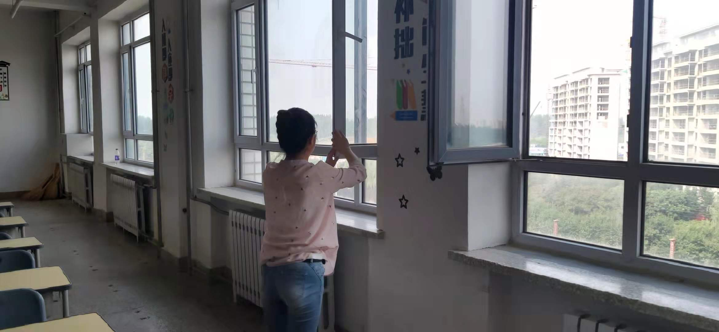 班主任为教室开窗通风